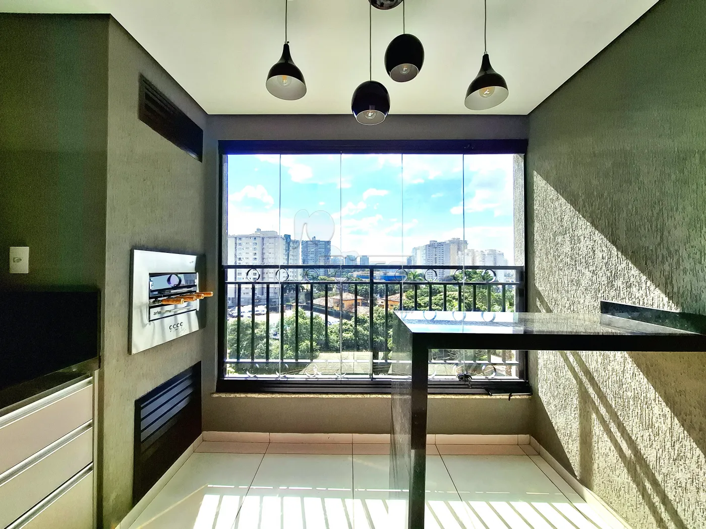 -Varanda gourmet com churrasqueira e blindex;