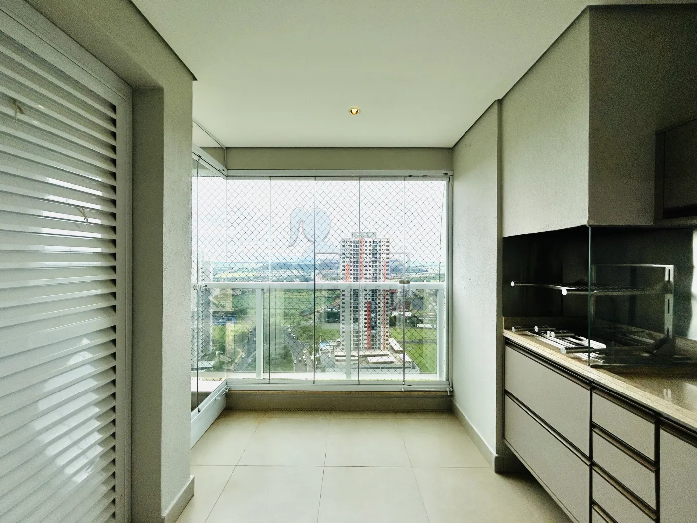 -Varanda gourmet com churrasqueira e fechamento em vidros;