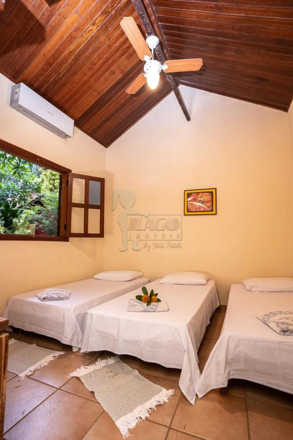 Sobrados: 1 suíte casal (cama de casal), 1 suíte dupla (camas de solteiro), 1 suíte tripla (cama de casal e solteiro) e 1 suíte quíntupla (cama de casal, solteiro e beliche), totalizando 47 leitos.