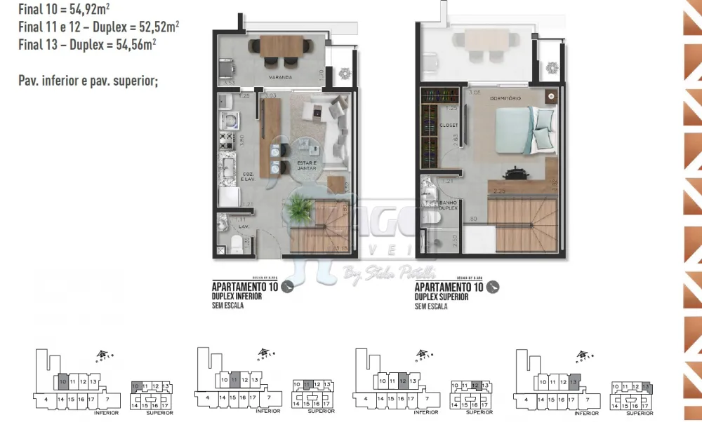 Apartamento duplex de 54m² com: