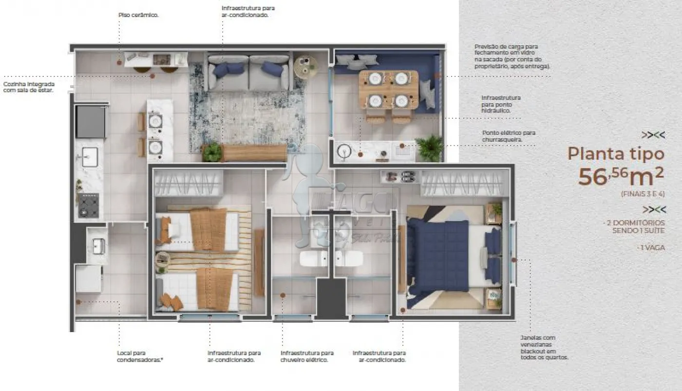Apartamento de 56m² com: