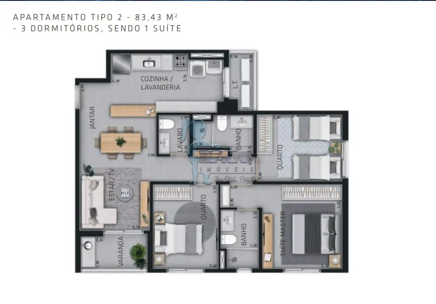 Apartamento de 83m² com duas possibilidades de planta: