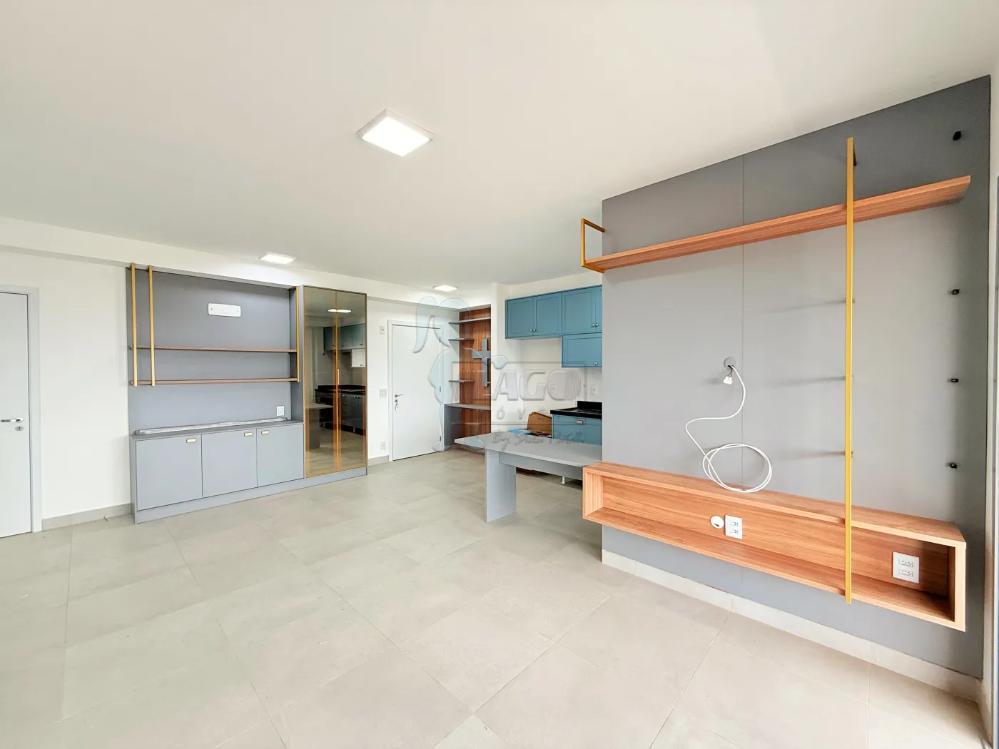 -Sala ampla 02 ambientes com painel, estante e armário planejados;