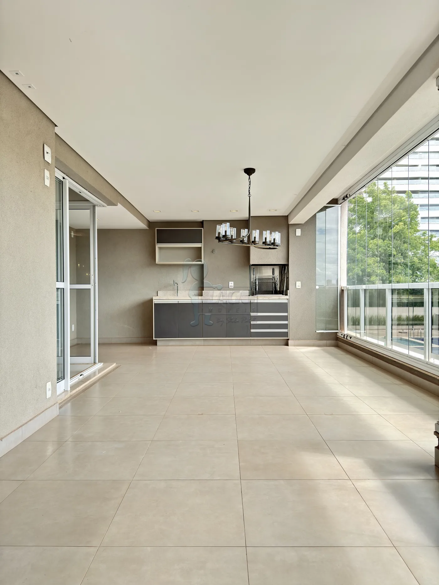 -Varanda gourmet com churrasqueira e fechamento em vidros;