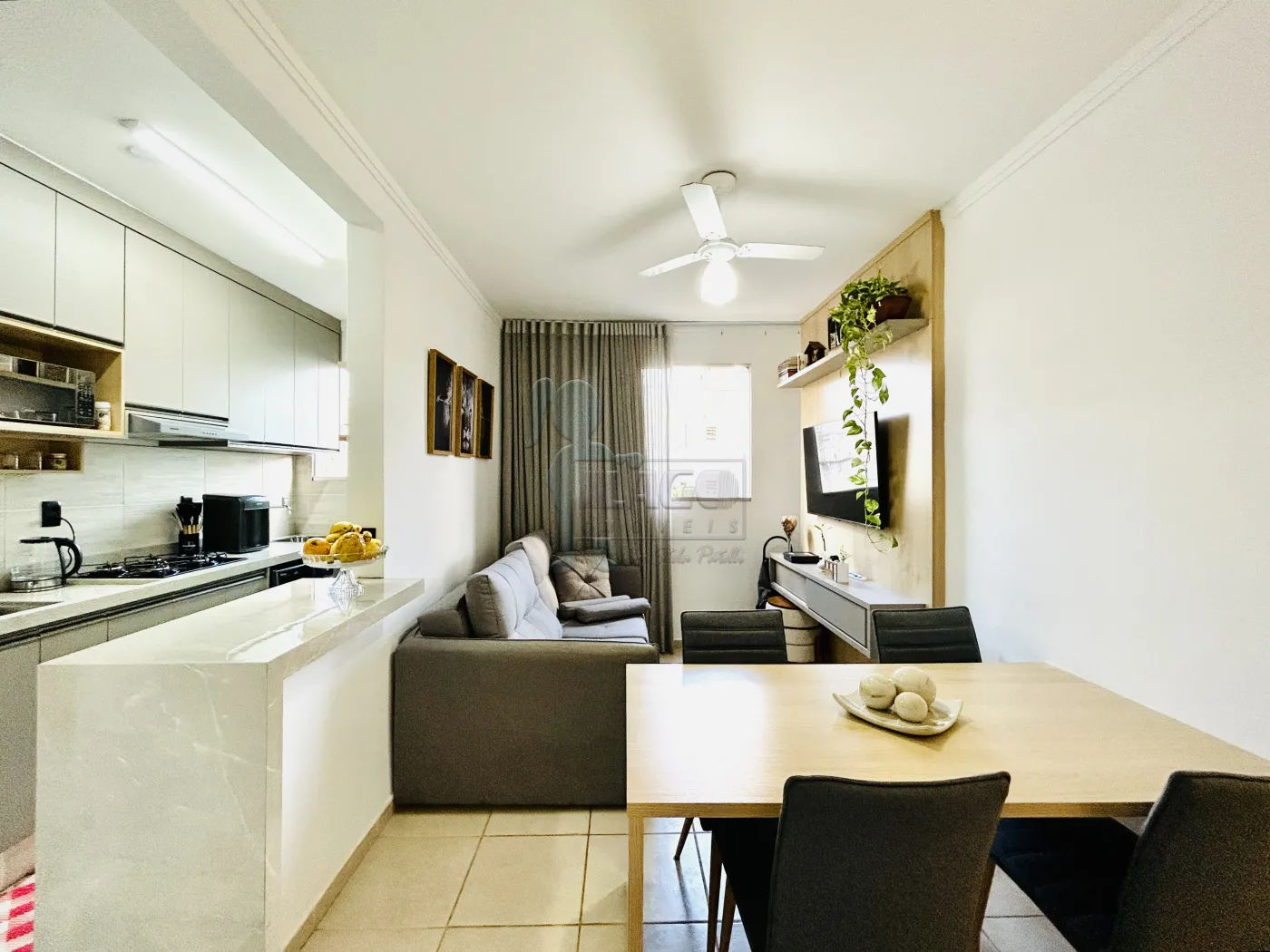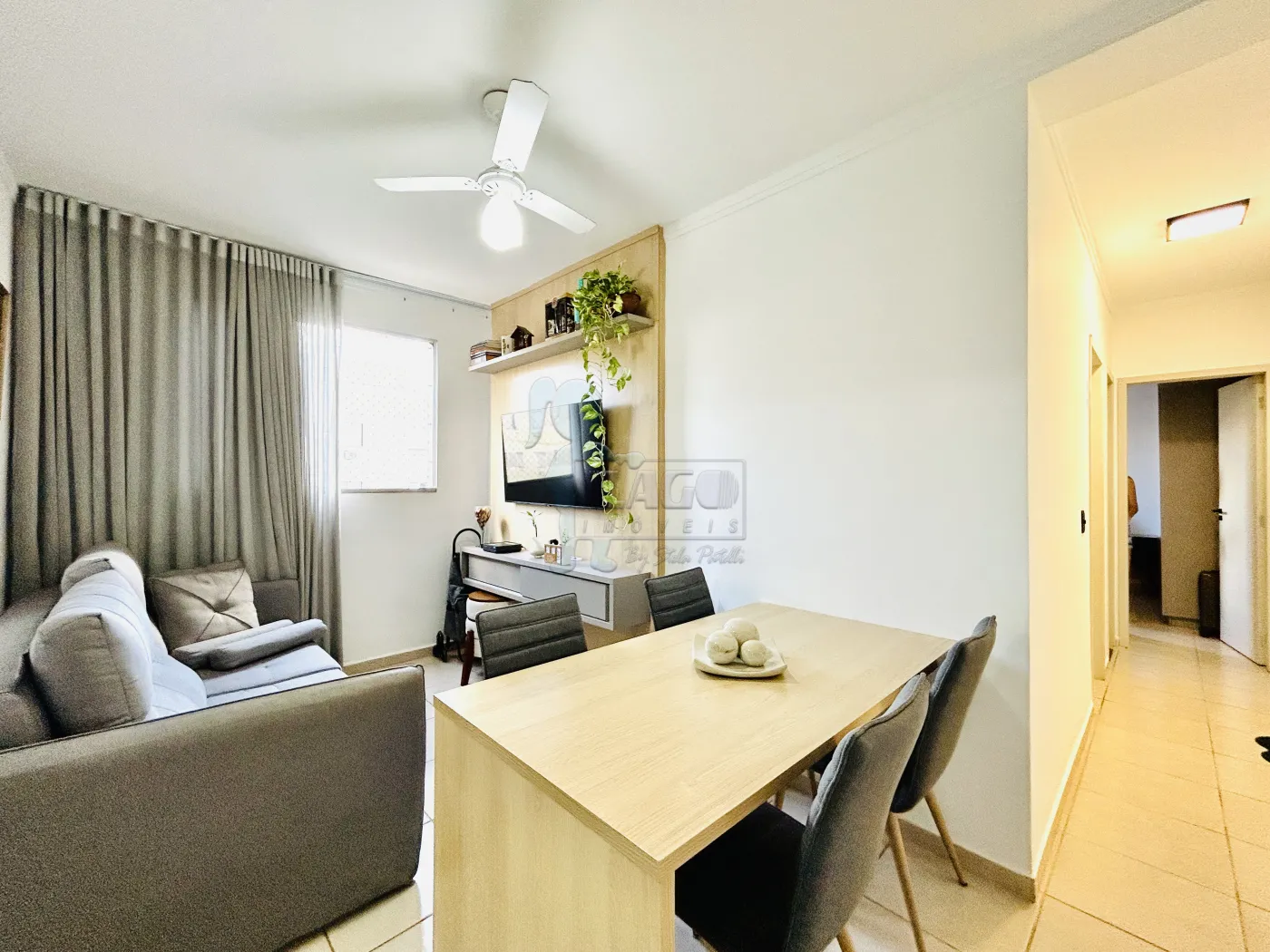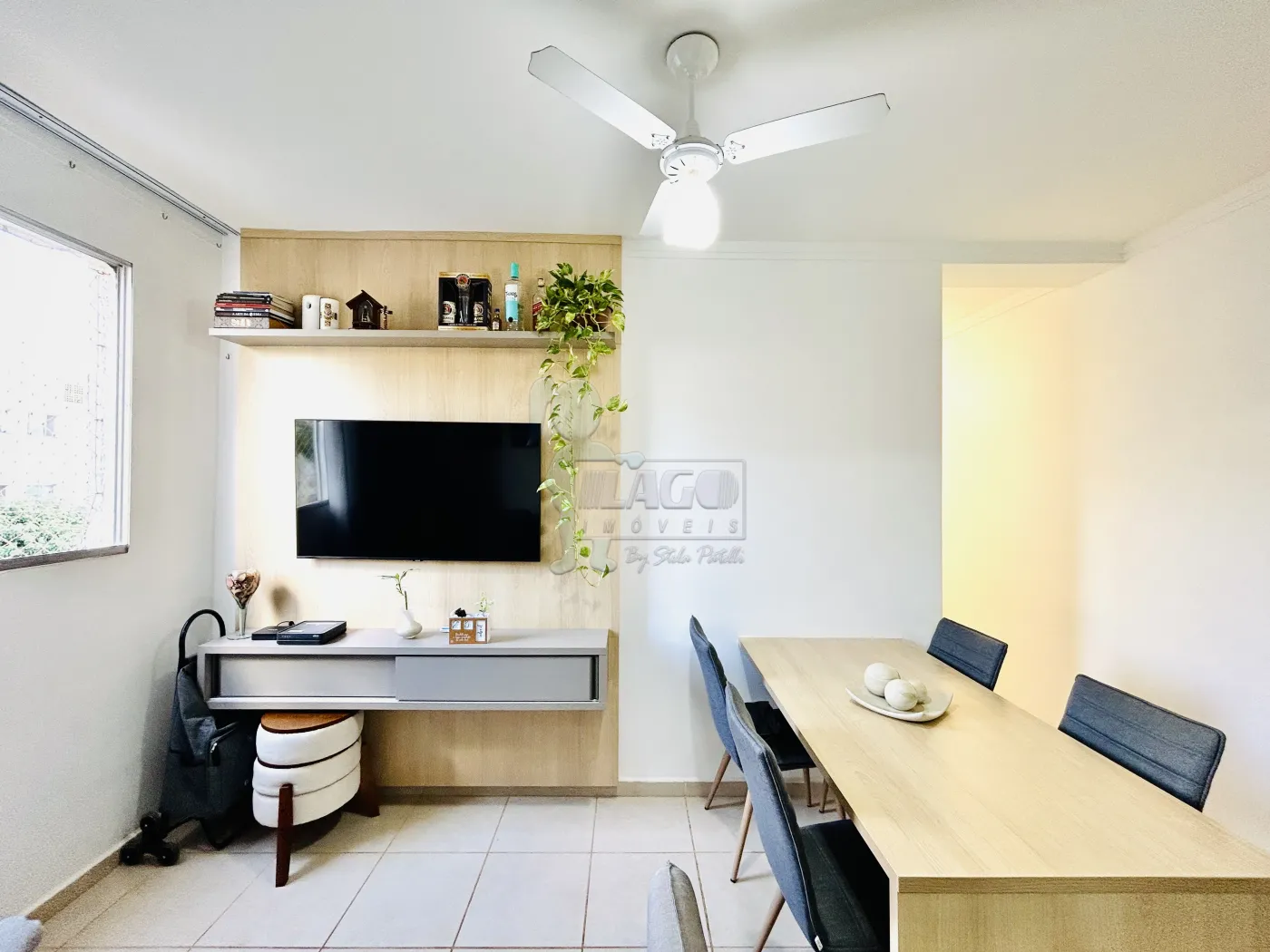 -Sala 02 ambientes com painel de Tv e mesa de jantar;