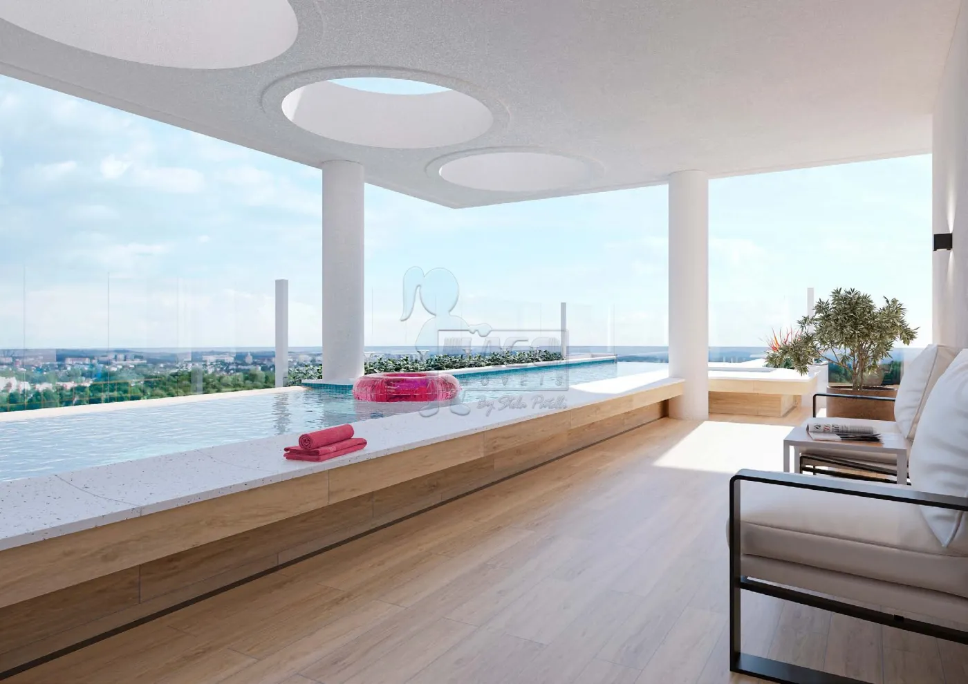 - Piscina com raia de 12,5m, borda infinita, parede de vidro e em balanço com 1,30m da torre;