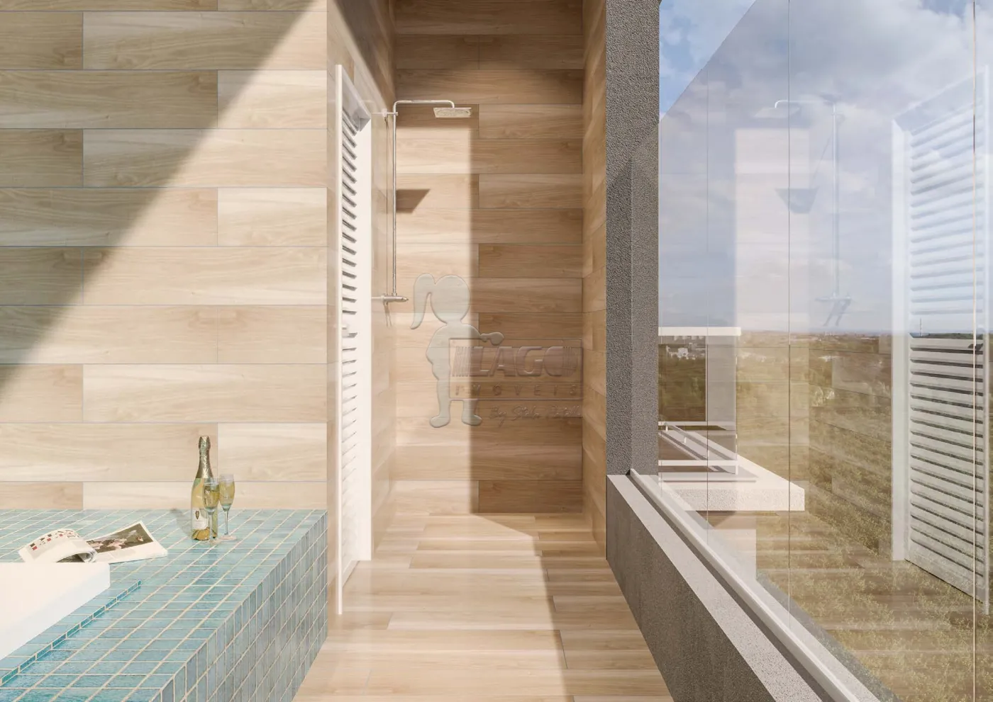-Piscina com raia, borda infinita e parede de vidro em balanço com 1,30m da torre;