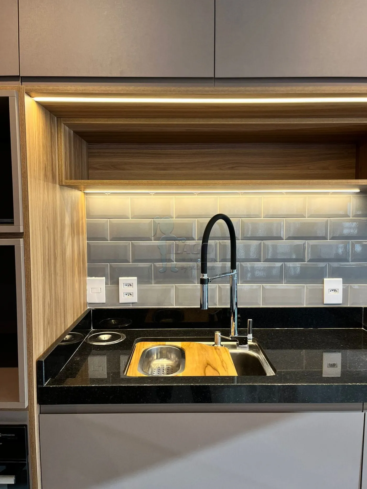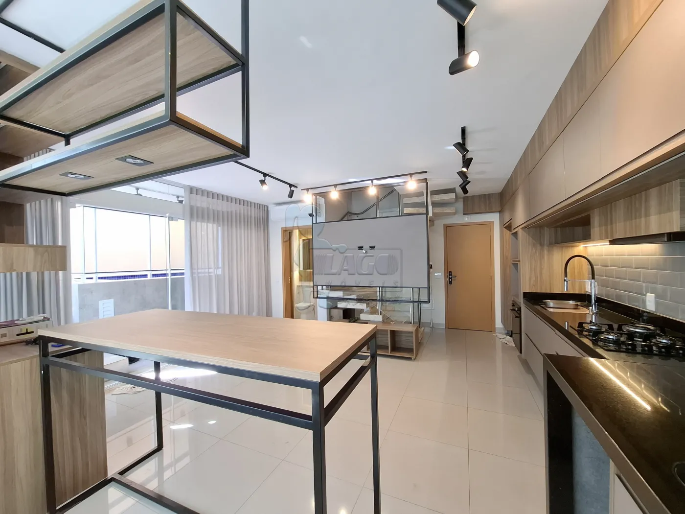 -Cozinha com cooktop e armários;