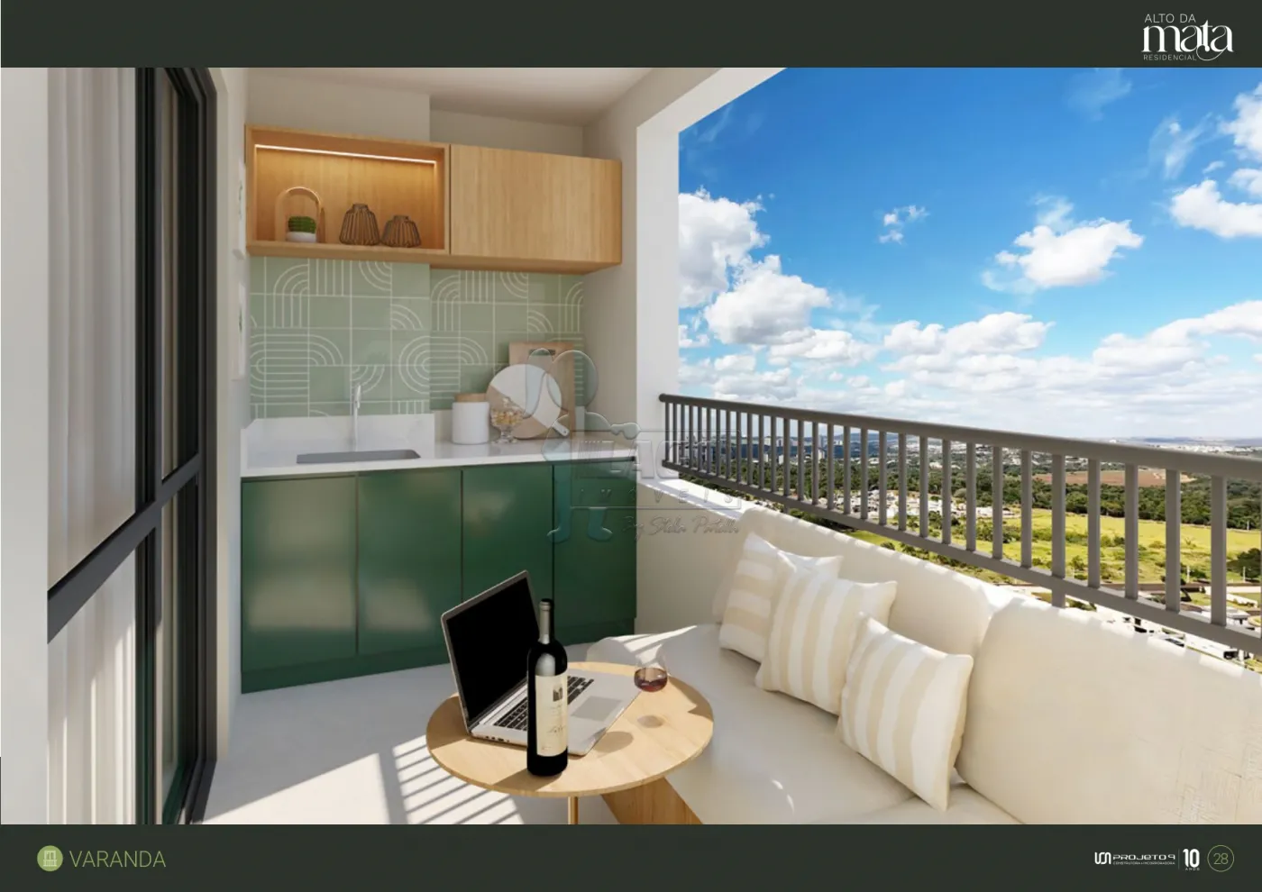- Varanda integrada com lavanderia, com 2 pontos elétricos e preparada para fechamento em vidro;