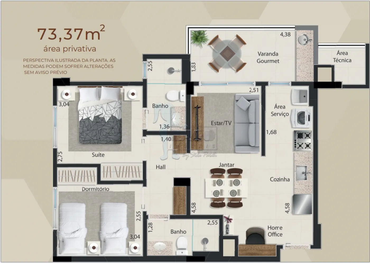 Apartamento de 73m² com:
