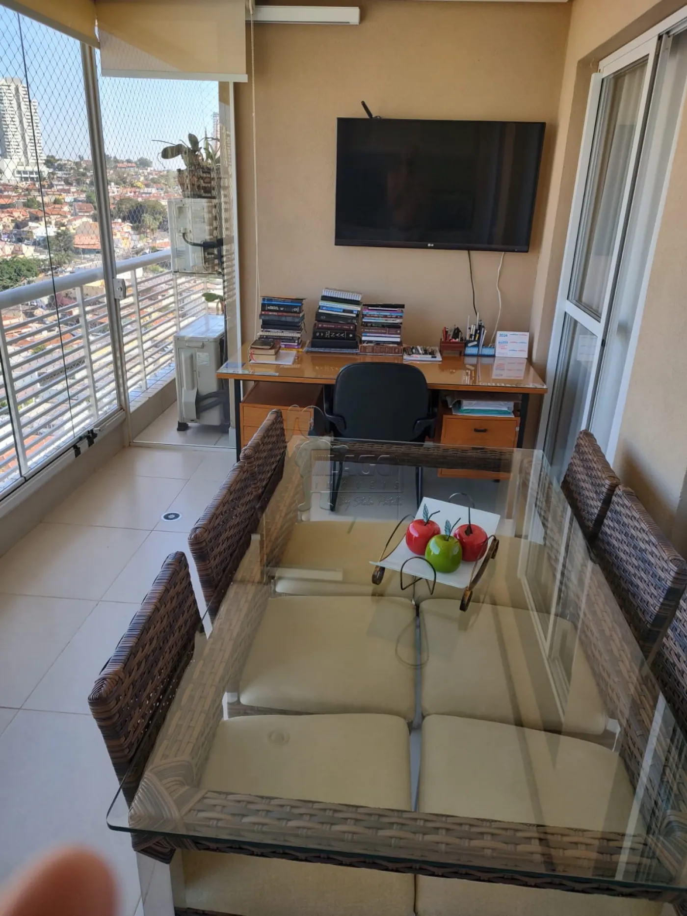 -Sala ampla com sacada gourmet com churrasqueira e pia;