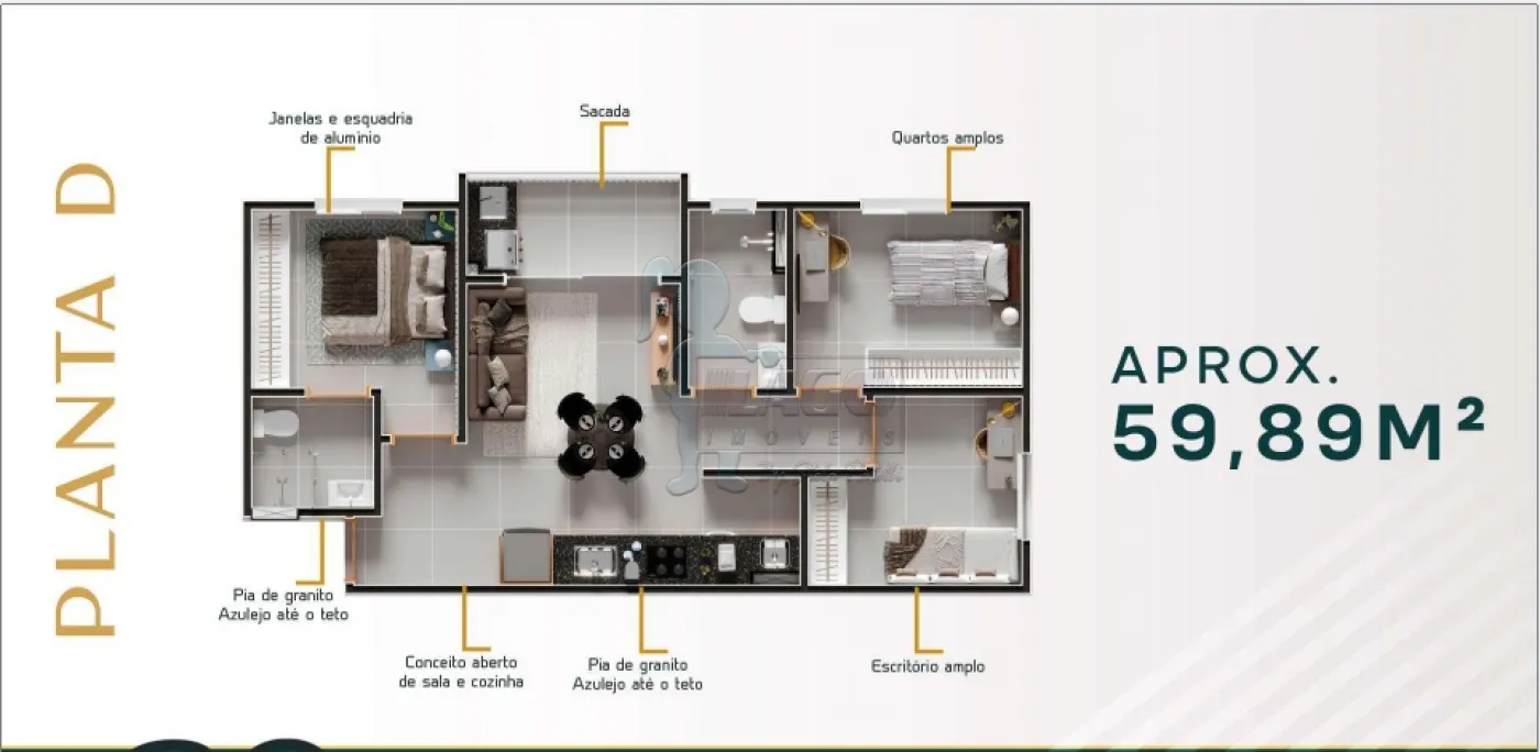 Apartamento de 59m² com:
