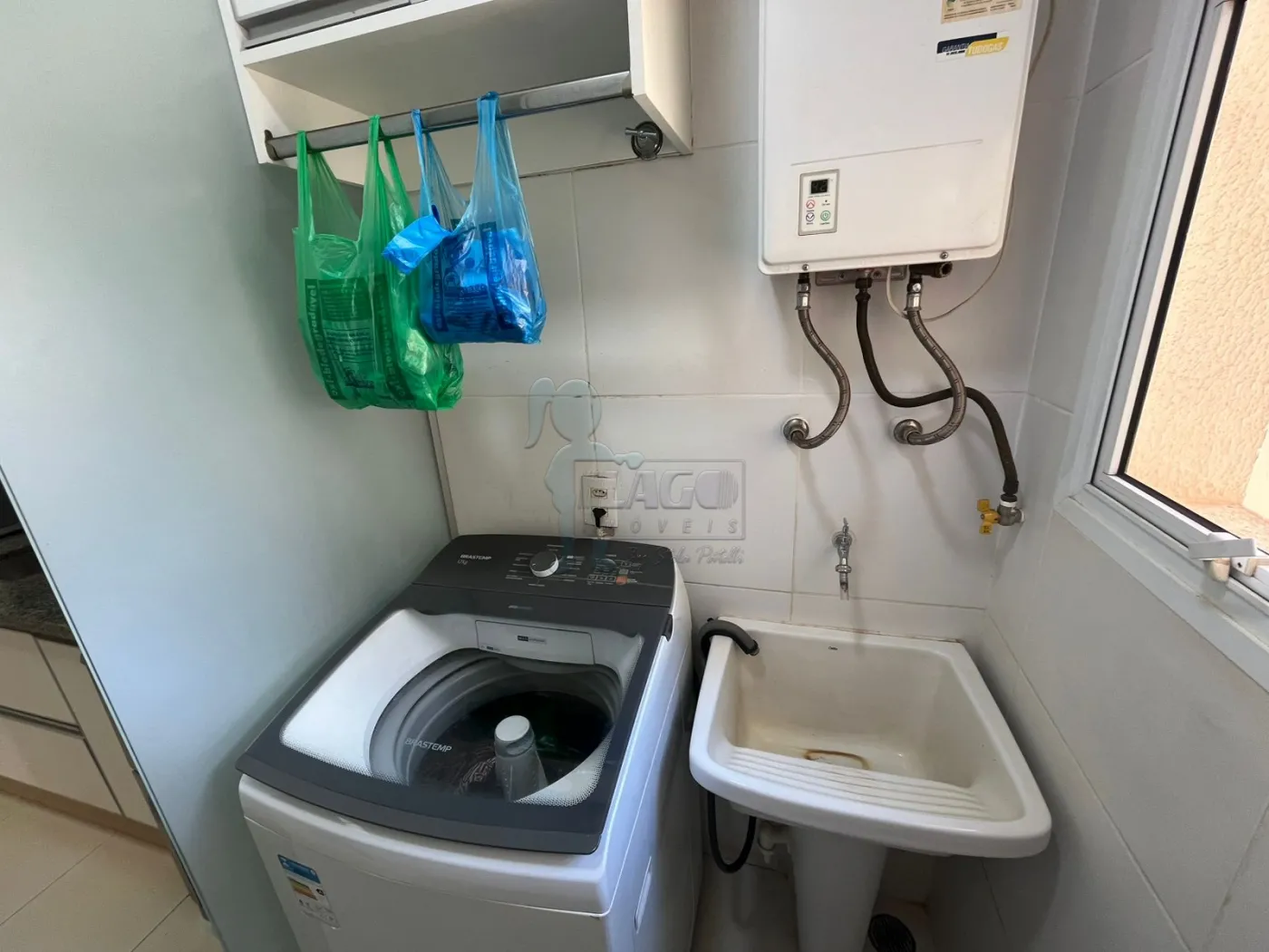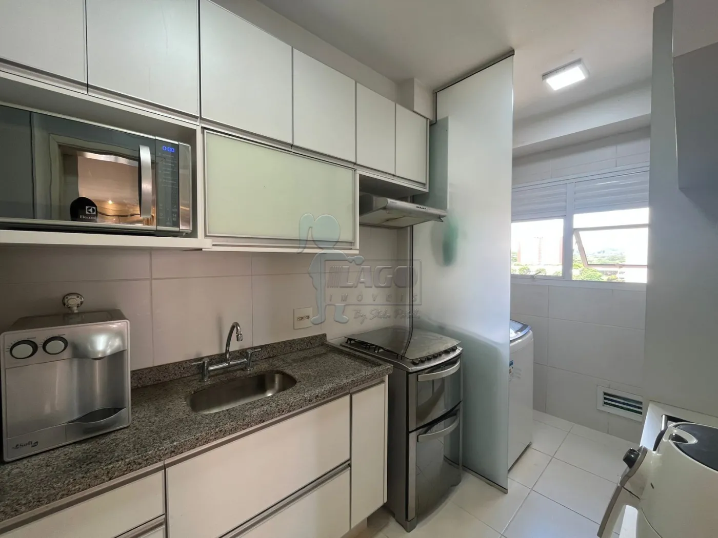 -Armários planejados na cozinha e área de serviço.