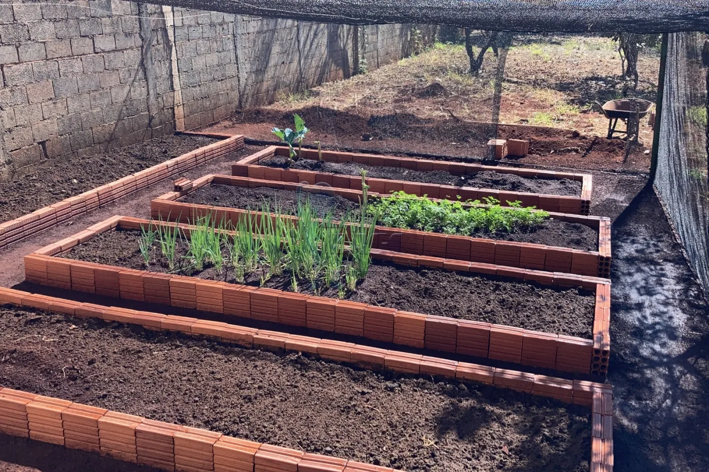 -Horta com área coberta por sombrite;