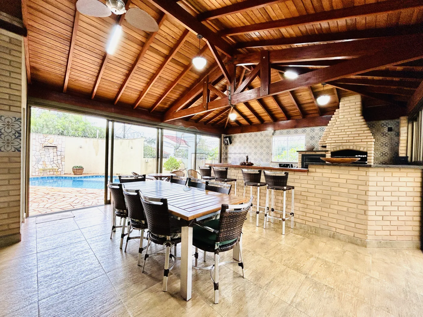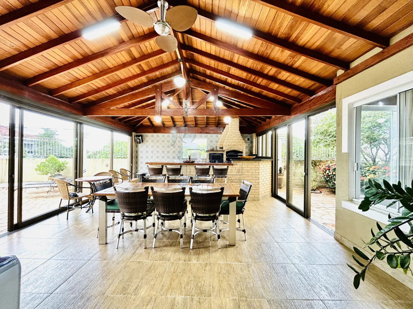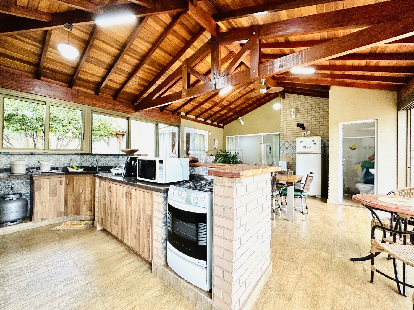 -Varanda gourmet com churrasqueira, forno, fogão a lenha e fechamento em vidros;